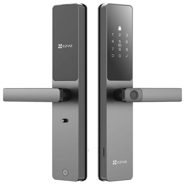 قفل ذكي EZVIZ DL05 - فتح بالبصمة والرمز السري والبطاقة - واي فاي مدمج - معيار IP65 - منفذ طوارئ يو اس بي س